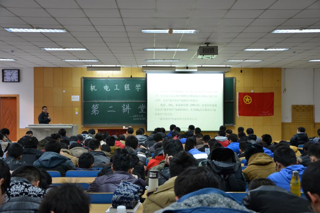 同学课余生活,让同学们了解当今世界存在的气候问题及低碳经济,提高同学们的环保意识,2014年12月6日上午在主楼11208教室,H动漫