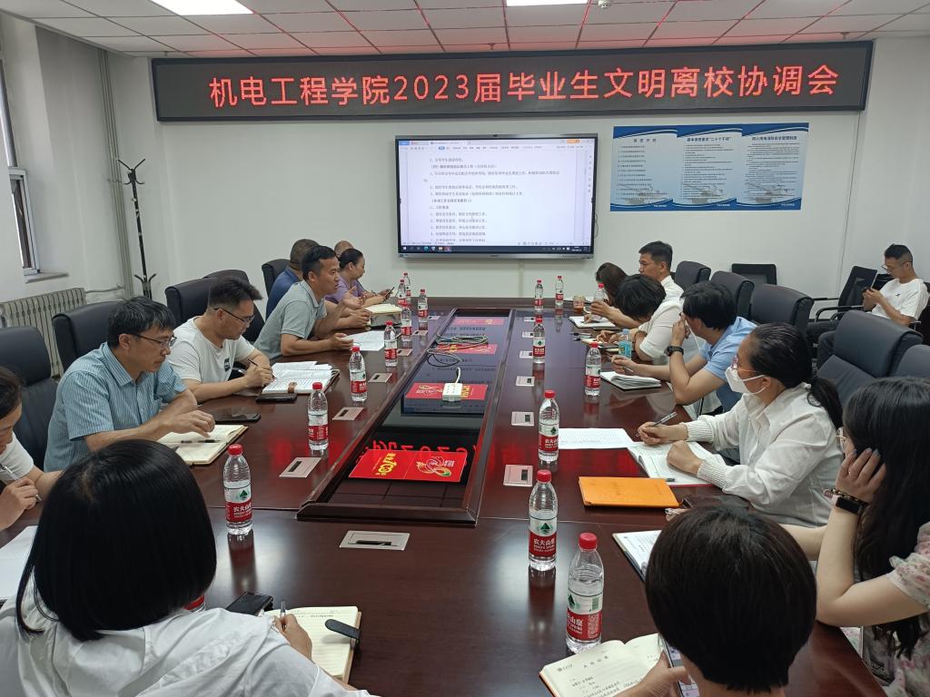 在科学313会议室召开了2023届毕业生文明离校工作协调会,院长尹建平、副院长李世中、赵河明以及各系主任、各科室负责人、毕业生班主任、辅导员老师参加了此次会议。会议由院党委副书记刘光主持。