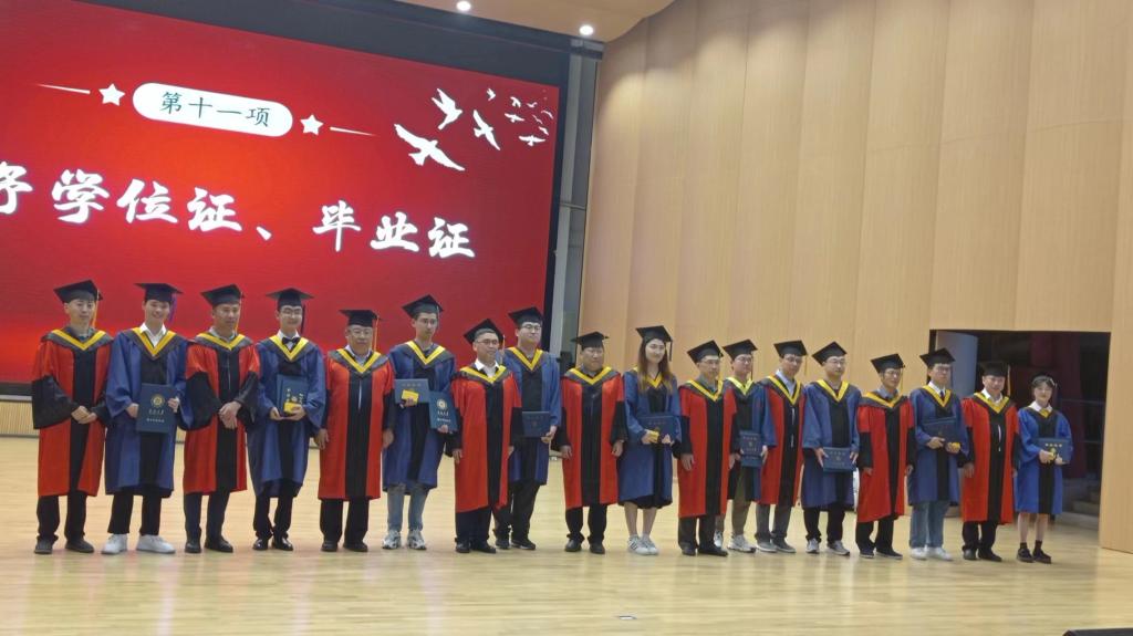 首先,李世中院长和赵河明院长分别宣读了授予本科生、硕士生和博士生毕业证、学位证的决议。紧接着教师代表闫小龙老师发言,希望同学们:第一,不断学习和提升自我;第二,培养自己的团队合作能力;第三,积极面对困难和挑战。毕业生代表陶露和在校生代表荣江伟进行发言,他们表示,毕业生毕业后必将心怀祖国,将自己在学校所学运用到社会,回报社会,在校生要以优秀毕业学长学姐为榜样,接过薪火,砥砺前行。随后毕业班班主任送上毕业祝福,嘱托毕业生们不忘初心,牢记使命,四年来有无数的欢声笑语和悲欢离合,希望他们前程似锦,未来可期。