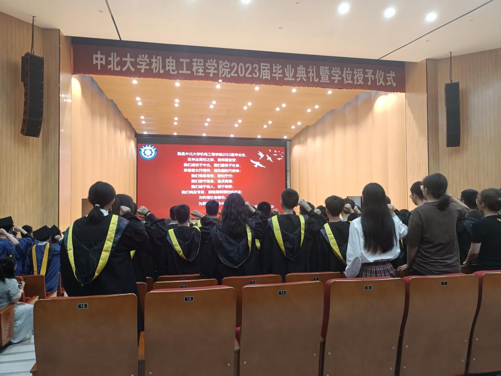 2023届毕业生,在毕业离校之际,我郑重宣誓:我们成长于中北,我们服务于社会承载着太行精神,担负起时代使命;我们情系母校,致知于行;我们坚守信念,追求真理;我们诚于做人,恒于做事;我们响应号召,到祖国需要的地方去;为和谐社会建功,为民族复兴奋斗!