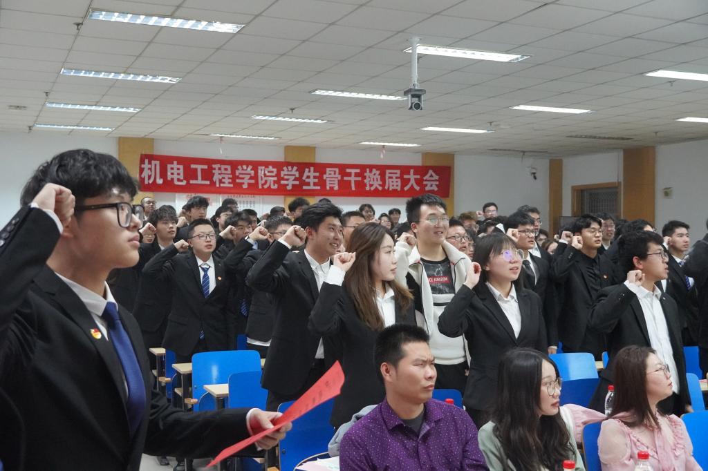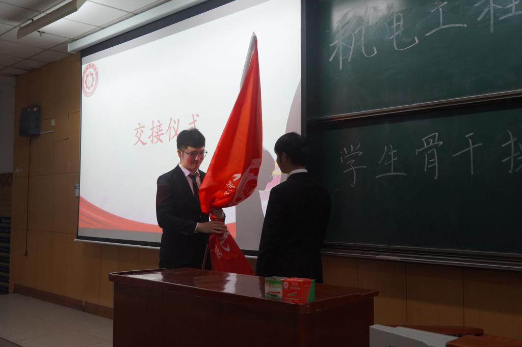 紧接着在大会上进行了旗帜交接仪式。交接仪式,交接的不仅是旗帜,还有那份作为学生骨干的担当。随后学生骨干共同宣读誓言。