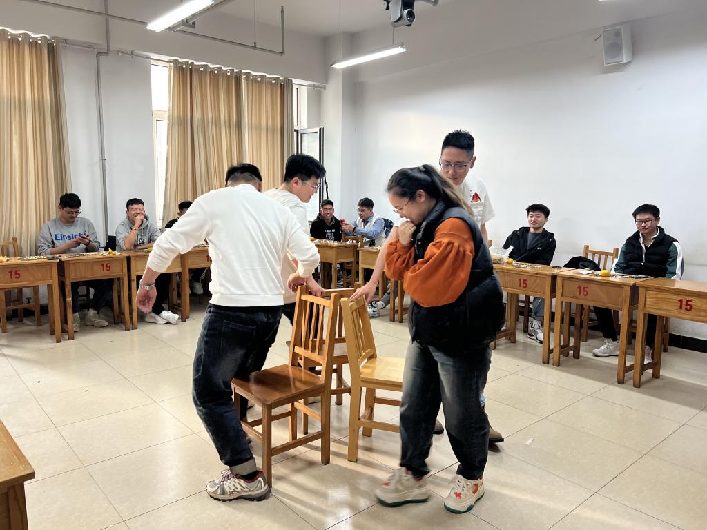 本次团建主要以游戏形式为主,活动中游戏共有六项:党史党建知识问答、我对你的第一印象、抢凳子、数字炸弹、合力起身、蒙眼敲,各种令人捧腹的场景让每一环节充满了欢声笑语。各部门同学在这个游戏中迅速熟络起来,加深了对彼此的印象,增强了同学们团队合作能力和集体荣誉感。