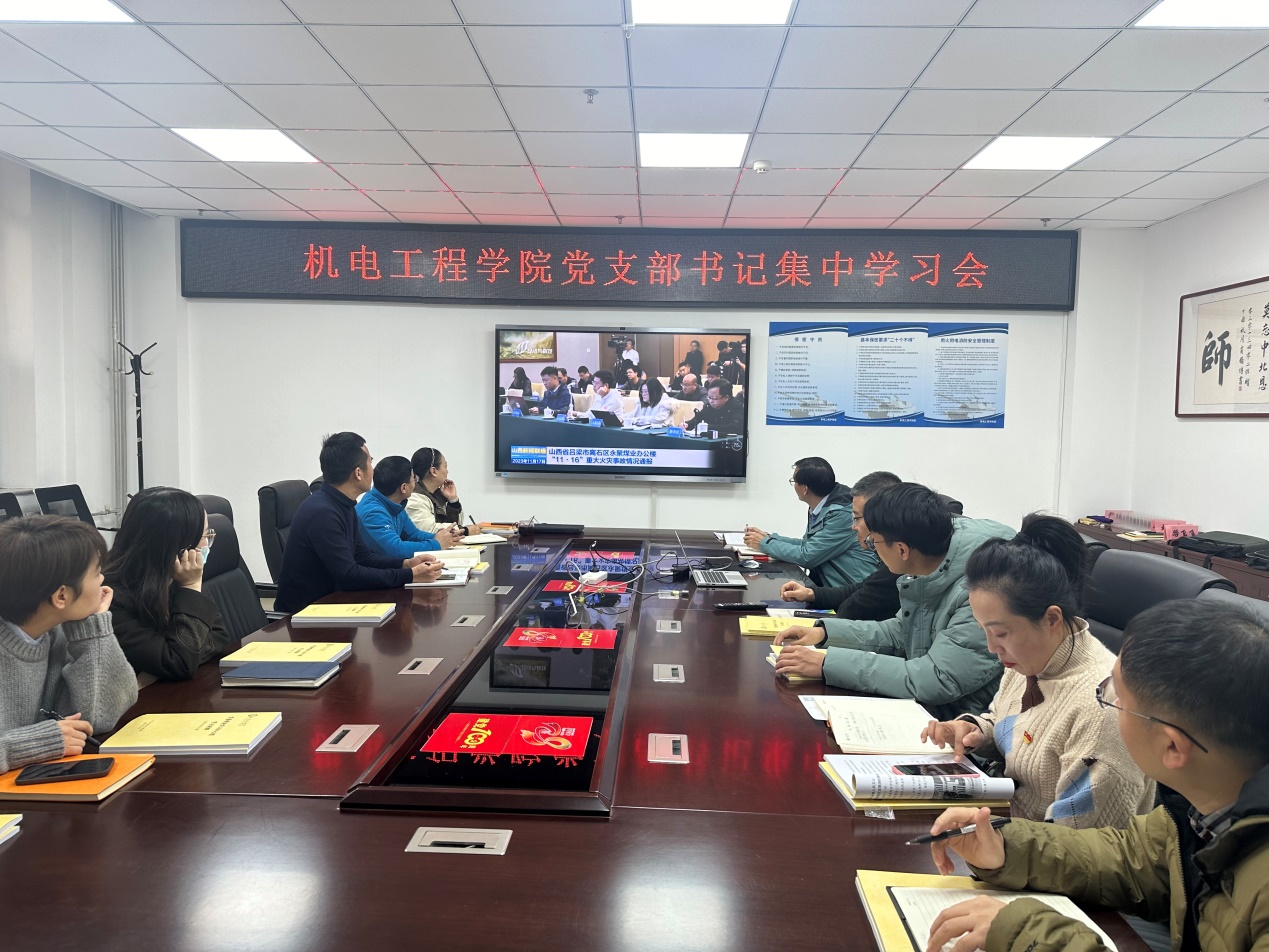 会上,党支部书记集中学习了《习近平著作选读》第一卷中“群众路线是党的生命线和根本工作路线”、《求是》杂志文章“坚持‘四下基层’走好群众路线”、新华日报文章“走好新时代‘四下基层’之路”。刘光副书记传达了学校《关于深入学习贯彻习近平总书记关于安全生产重要论述和重要指示精神的通知》,与会人员集体观看了“11·16”重大火灾事故视频。他要求各党支部深入学习贯彻习近平总书记关于安全生产重要论述和对我省吕梁市离石区永聚煤业办公楼“11·16”重大火灾事故的重要指示精神,牢固树立安全发展理念,强化底线思维,压实安全生产责任,坚决维护师生生命财产安全和校园安全稳定。