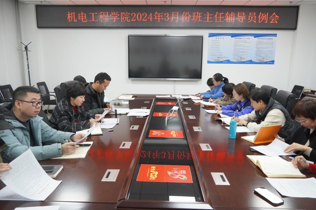 在科学楼A座313会议室召开了2024年3月份班主任工作例会,全体班主任与辅导员老师参会,会议由院党委副书记刘光主持,院党委书记赵永娟出席会议。