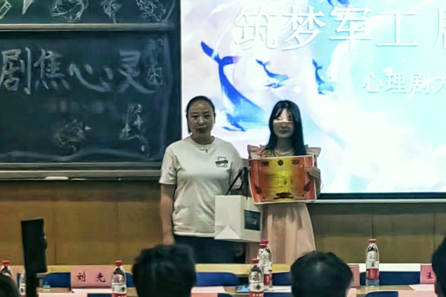 两个小时精彩的表演,激烈的角逐,最终,23010343班的《遇见曾经》获得本届心理剧大赛一等奖,23010442班《筑梦师》获得二等奖,23010441《平行时空饭店》获得三等奖,分别由院党委副书记刘光老师、院团委书记李晶晶老师、学生科贺婧老师为他们进行颁奖。心理剧大赛在大家的庆祝欢呼声和愉快的笑声中结束。