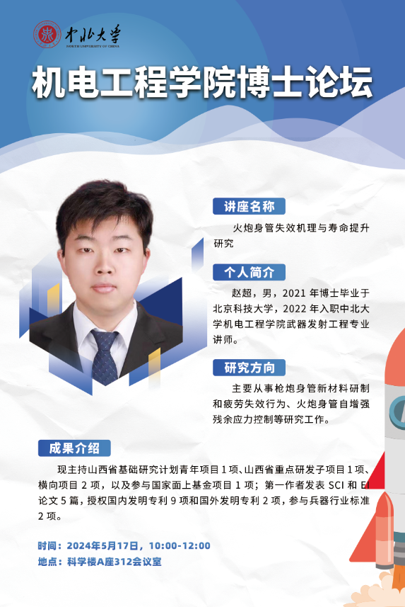 在科学楼A座312会议室举办了以“枪炮身管失效机理与寿命提升研究”“计及点火压力的火炮内弹道耦合求解及身管坡膛结构对启动压力影响规律分析”为主题的学术讲座。本次讲座由赵心远主持,赵超、邹利波老师主讲。