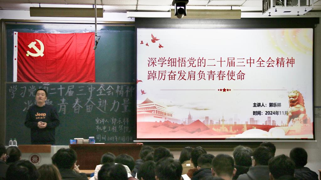 特邀仪器与电子学院团委书记(学生科科长)郭乐祥老师在11305H教室举办了一场题为“深学细悟党的二十届三中全会精神,踔厉奋发肩负青春使命”的宣讲会。H动漫