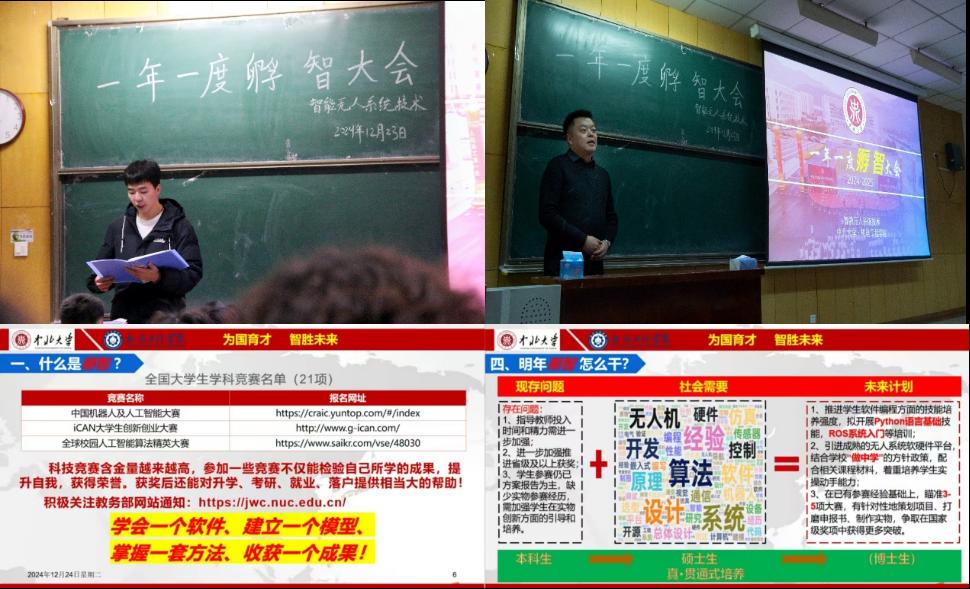 2024年12月23日晚7点,2024年智能无人系统技术专业本科生双创成果总结会暨“一年一度孵智大会”在11108教室举行。H动漫