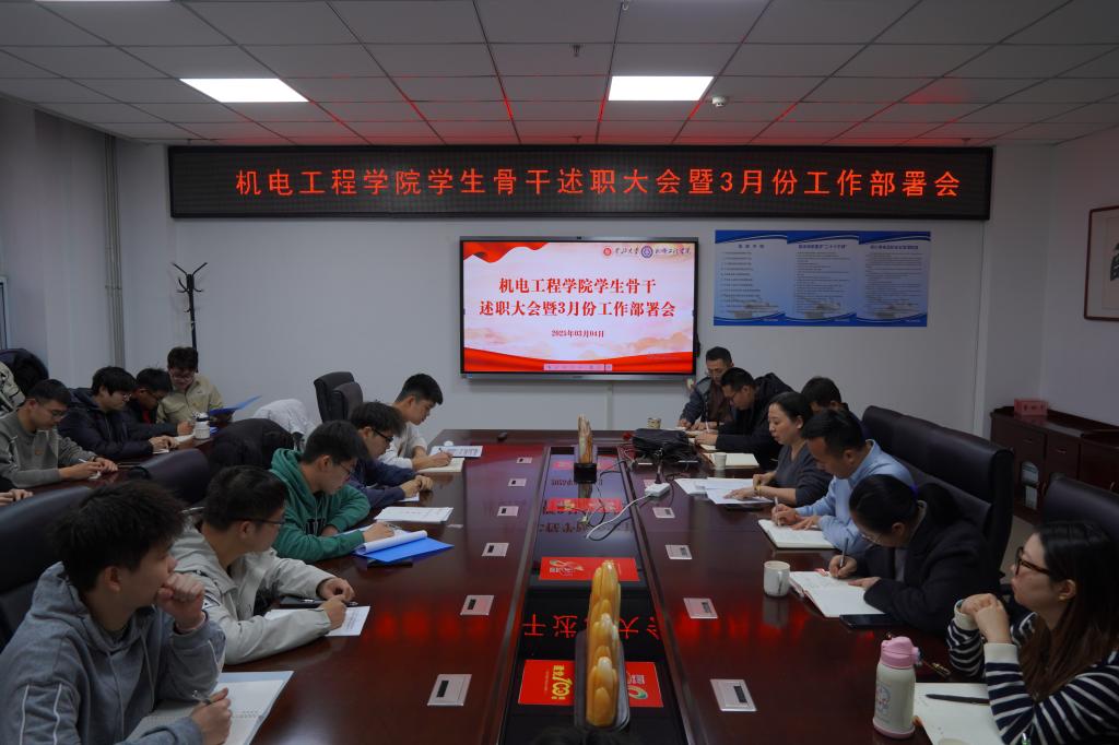 于科学楼A座313会议室召开学生骨干述职大会暨3月份工作部署会。院党委副书记刘光、院团委书记李晶晶以及全体辅导员老师出席会议,学院部长级以上全体学生骨干参加会议。