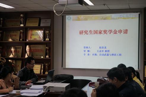 刘光老师首先介绍并宣读了本年度研究生国家奖学金、航天公益奖学金的评审要求,并强调评审工作的公平与公正,鼓励各位同学继续做好科研工作。各候选学生从科研、学习、德育活动等各方面进行了个人展示和答辩。大家充分展示了各自的科研成果及参与的各项活动,并针对评审老师的问题做了精彩的回答。25位评审委员从科研创新能力、德育社会工作能力、突出贡献、科研成果方面对候选学生进行综合评比。最后,经过认真严格的投票,按学院分配名额的比例,共有1名博士研究生、7名硕士研究生获得了本年度研究生国家奖学金,2名硕士生获得本年度航天公益奖学金,并将评审结果公示。
