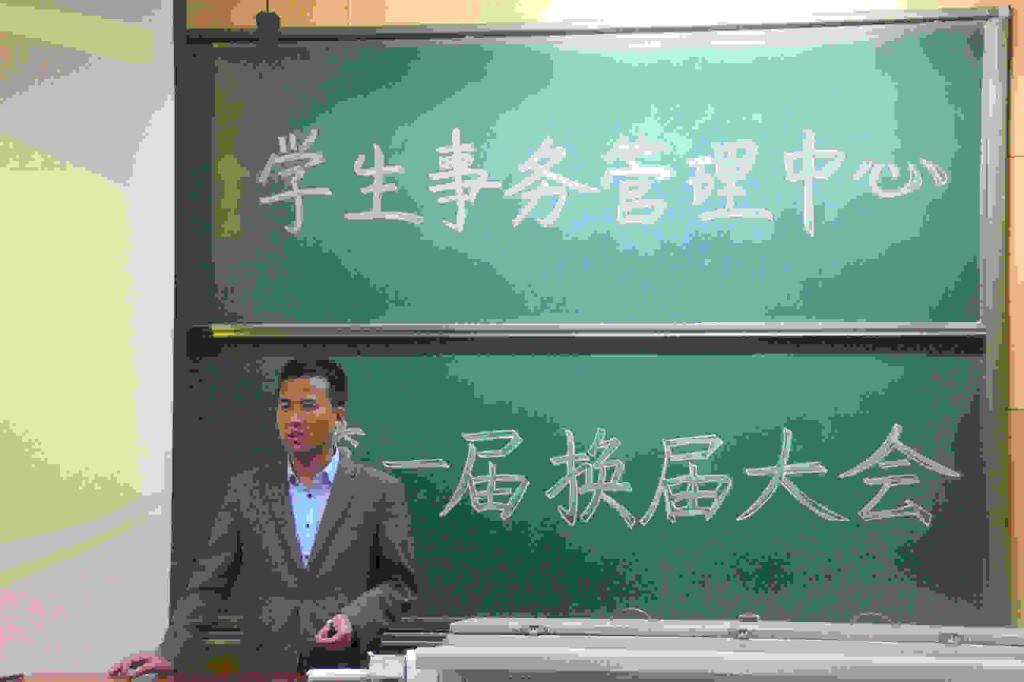 下午4时50分许,会议正式开始。首先由上一届学生事务管理中心主席高齐学长及现任学生事务管理中心主任田博文学长分别发表讲话。他们都谈到作为一名大学生该如何利用大学这个机会充实自己、完善自己、发展自己。同时就如何开展学生工作,如何让学生工作落到实处更好的服务同学,都发表了自己独到的见解。