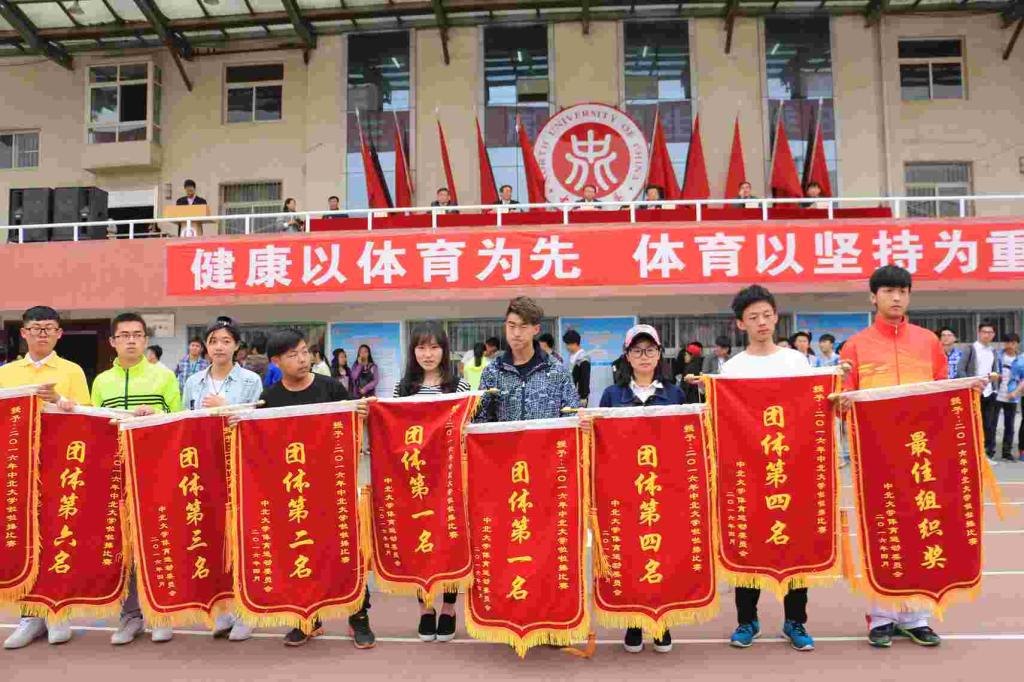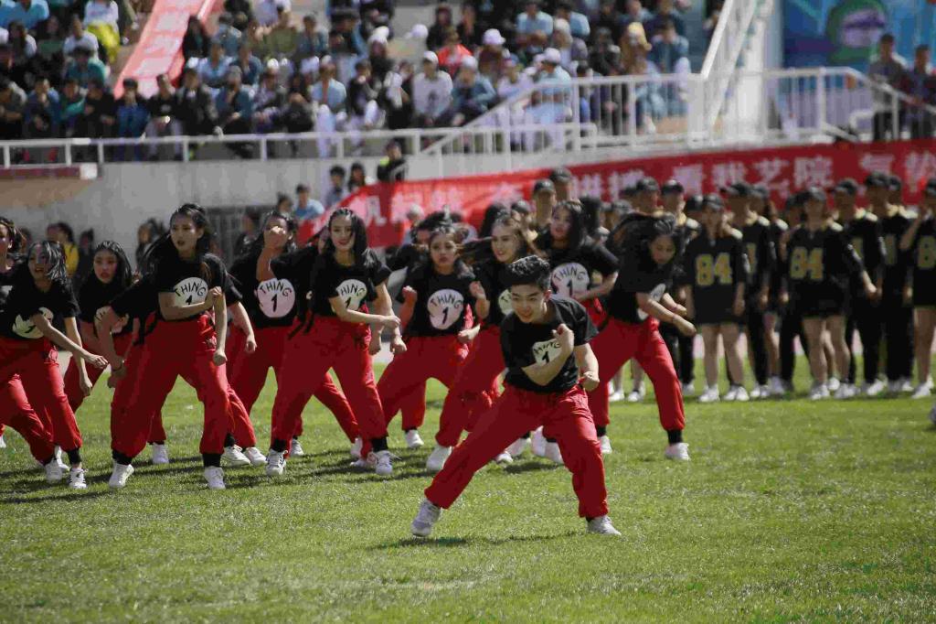 的第38届春季田径运动会啦啦操比赛在主体育场激情上演。校领导及各参赛队与上千名师生一道观看了比赛。