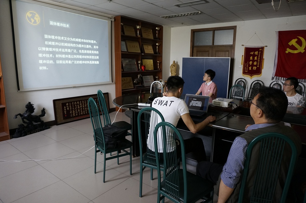 汇报人邱枫以“视景仿真技术用于轻武器评估”为题展开讲述,主要针对视景仿真技术和轻武器评估技术的概念、发展等进行概述,对两者相结合所采用的方式、手段,以及其中的关键技术进行了详细叙述,最后对整个讲座进行了总结。汇报人蓝维彬以“缓冲技术发展趋势”为题展开论述,主要针对现有的缓冲技术原理、应用等进行了详细讲述,最后对缓冲技术的发展进行了详细的总结。在杨臻老师的引导下,主讲人与在场学生展开互动交流,通过此次论坛,大家都有了不同程度的认识及感悟。