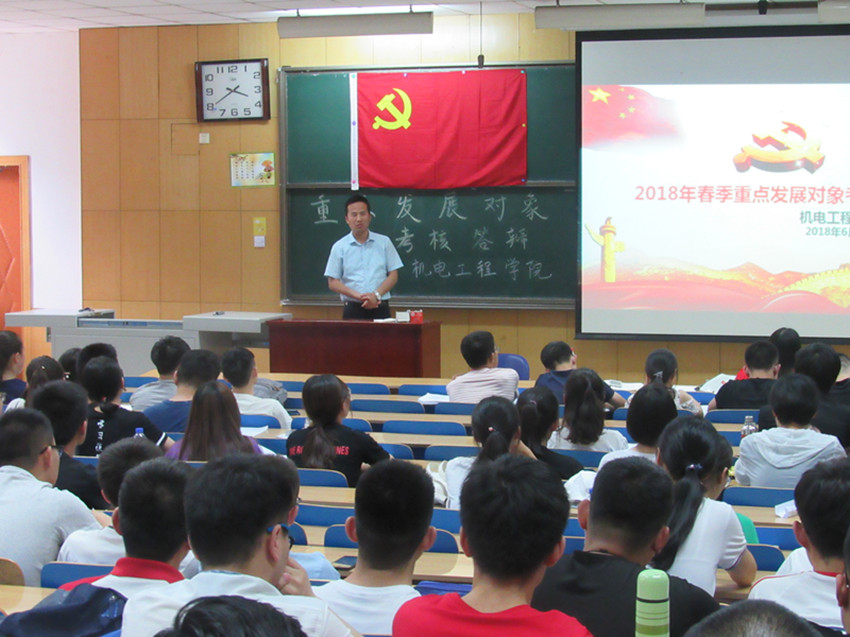 学生一支部高家乐同志主持,学院党委副书记刘光、学生科科长张丽花、学生科赵振霞老师以及各党建部长、学生党支部书记和支委出席本次答辩会,72名重点发展对象参加了此次答辩会。