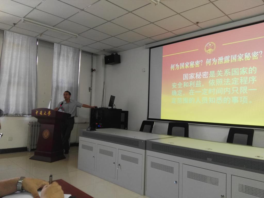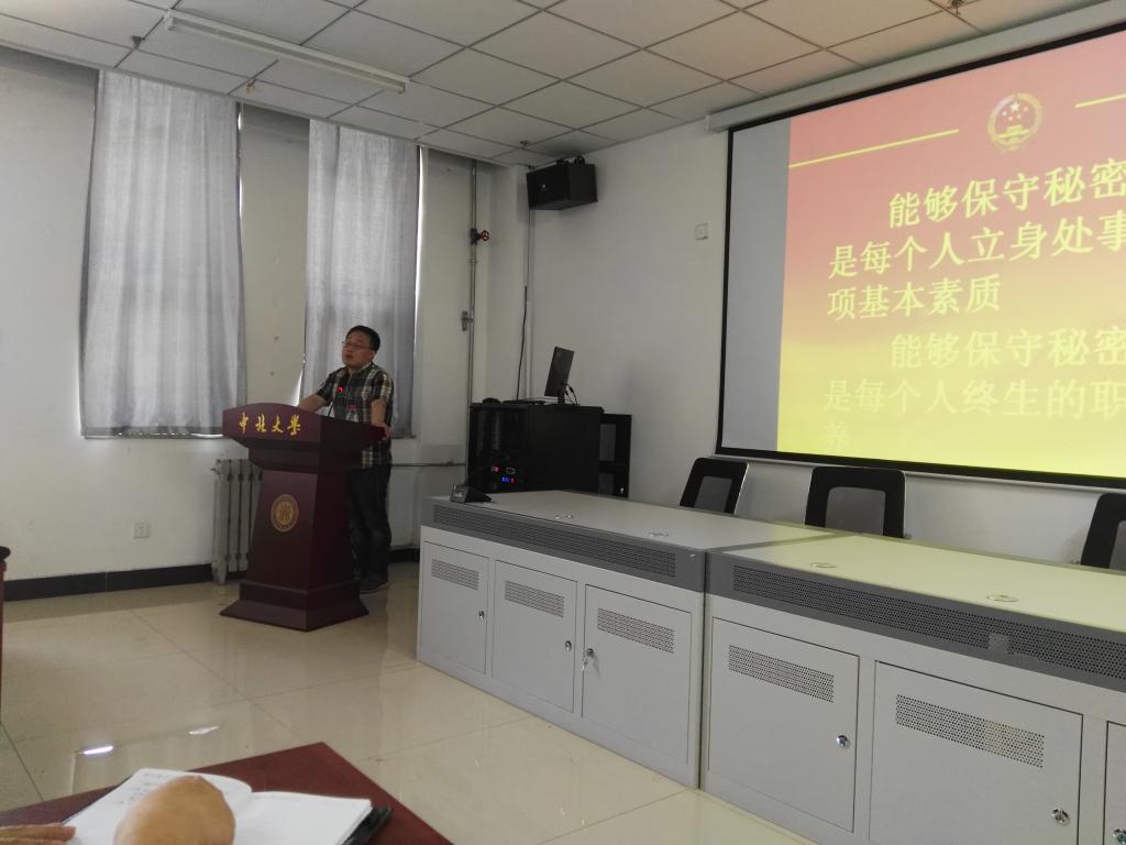 会上,喻华兵处长对全院涉密人员进行了保密教育培训,对保密基础知识进行了详细的讲解,通过对十大涉密事件、十起典型的失泄密案件的分析解读,加强了涉密人员的责任感和保密意识。蔡国轩主任对中期复查工作原则、现场审查程序及审查内容做了详细介绍。