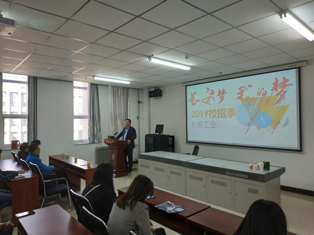 11月1日下午2:00在科学楼A座812会议室,重庆长安工业集团152厂人力资源部贾部长一行在科学楼2#812会议室举行招聘宣讲会,党委副书记刘光老师、曹广群老师、辅导员王丙龙老师及2019届60余名毕业生参加了宣讲会。