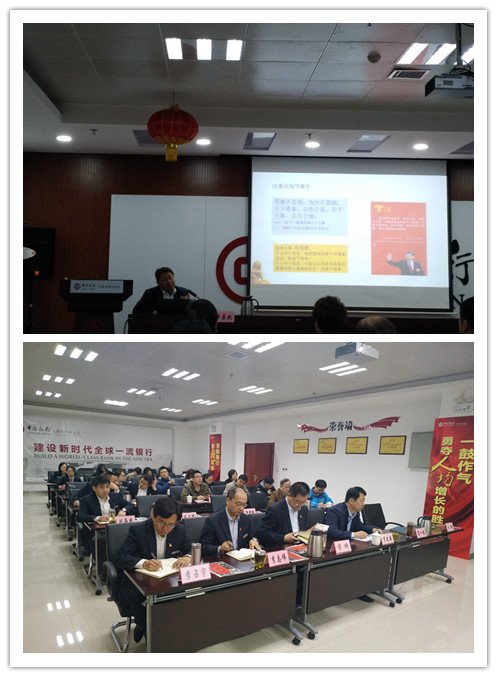 然后,学院和尖草坪区支行党员30余名党员认真听取了山西省委党校丰存斌教授的2个小时的辅导报告,题目是“深入开展大讨论、谱写新时代改革开放山西篇章”,丰教授以翔实的数据,生动的图片,从“唯有改革创新、奋发有为,才能实现全省工作更大的新突破”、“学习习近平总书记重要讲话晋升,高扬新时代改革开放旗帜”、“以学习的革命、思想的革命、工作的革命,推进理念的大提升、本领的大提升、作风的大提升”三个方面进行了详细阐述,强化担当的精神,提升作为的本领,培育创新的意识,秉持务实的作风。