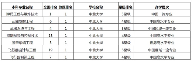 的7个专业均榜上有名,其中弹药工程与爆炸技术专业全国排名第1,装甲车辆工程专业排名第3,武器系统与工程专业排名第4。