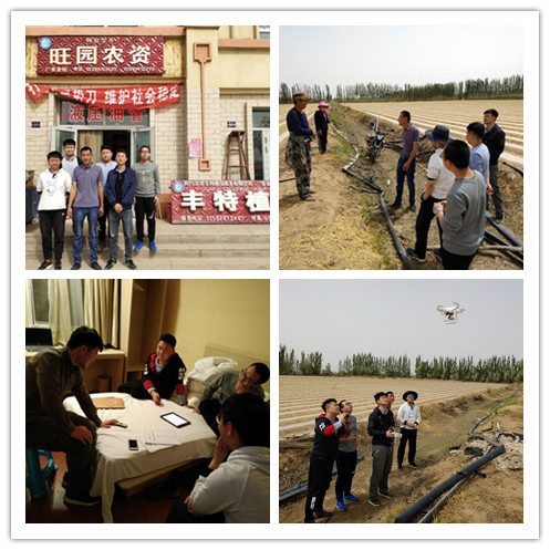 师生受到新疆阿拉尔市裕顺惠农农业机械服务农民专业合作社的邀请,赴新疆阿拉尔市进行无人机农药作业调研。