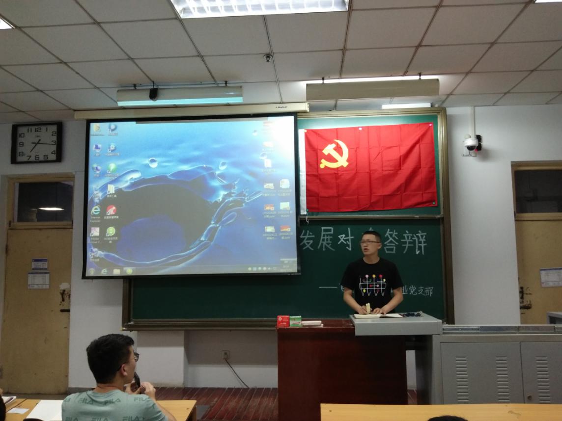 随后,八名发展对象依次上台答辩,每人限时二分钟,由支部纪检委员智远同志计时监督。八名发展对象分别介绍了各自在学习、学生工作、校园生活、科技比赛以及公益活动中取得的成绩和为学院乃至学校做出的贡献。