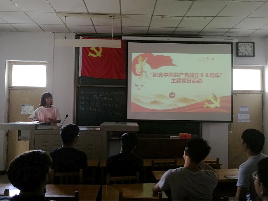 武器发射工程专业党支部在11301T教室举办了“庆祝中国共产党成立98周年”主题党日活动。本次活动由支部副书记薛淑娟同志主持,支部全体党员参加。