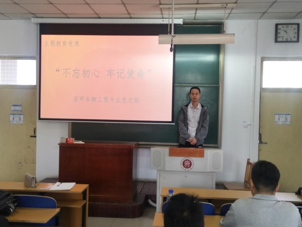 装甲车辆工程专业党支部在11216T教室开展了“不忘初心、牢记使命”主题教育活动。本次活动由支部副书记许增瑞同志主持。