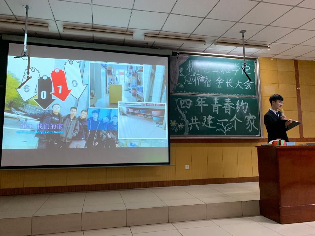 在09302召开了以“四年青春约,共建一个家”为主题的宿舍长大会暨优秀宿舍表彰大会。学生事务管理中心宿管部部长张彬,文瀛17号楼楼长杨桂玲,H动漫