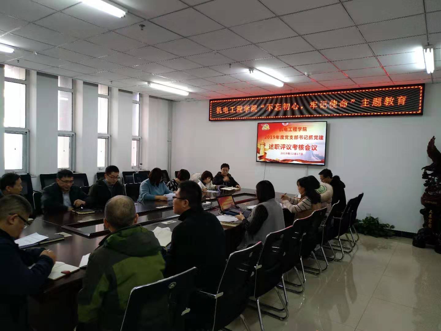 在313会议室召开2019年度党支部书记抓党建述职评议考核会议,学院党委委员、各党支部书记参加,院长王志军、副院长李世中列席参加,党委书记罗建国主持会议。
