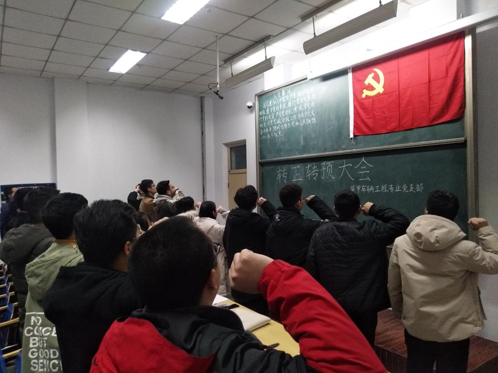 会议严格按照流程进行,首先由预备党员和发展对象逐次介绍自己近期情况,简明扼要地汇报了发展期间个人在思想态度、生活、学习、工作等方面的表现,表明了他们的入党动机和加入中国共产党的强烈愿望,并由他们对应的入党培养人和介绍人对其学习、工作、入党材料书写等方面一一进行评价。随后,经支部现有正式党员投票表决,由支部书记宣读投票结果和决议,即预备党员按期转正、发展和对象按期转预。最后由支部书记为所有转预的同志们佩戴党徽,带领全体党员宣读入党誓词。