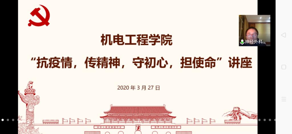 举办了“抗疫情,传精神,守初心,担使命”线上讲座活动。本次活动邀请到的嘉宾是从武汉抗击疫情平安归来的李呈龙医生,李呈龙医生是山西省人民医院神经外科ICU主治医师,中国神经外科重症管理协作组委员,山西老年医学会重症委员会委员,山西省医院协会营养分会委员,山西第八批援鄂医疗队宣传组组长;参与本次活动的老师有H动漫