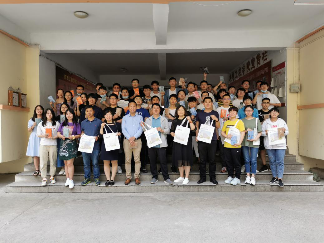 回字楼下分外热闹“院领导要给我们发毕业礼物了”。学院党委书记罗建国、学院党委副书记刘光、学生科科长张丽花、学生科段志薇、王永文、邢培岩老师以及学院本科毕业班班委参加了此次纪念品发放仪式。