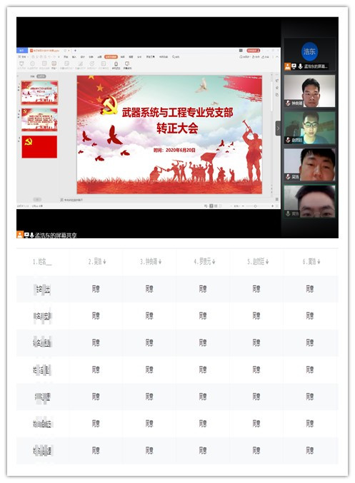 武器系统与工程专业党支部于线上腾讯会议召开预备党员转正大会