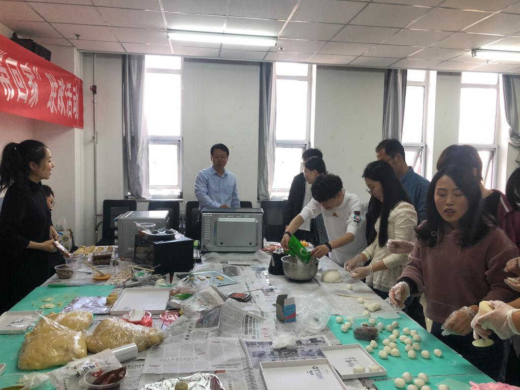 工会组织的2020年教职工“中秋,做个月饼带回家”活动在科学楼812室成功举办。校工会主席方和荣、校工会副主席赵振波莅临活动现场,学院党委书记罗建国、学院党委副书记刘光、工会主席崔俊杰等,与众多教职工共同制作月饼,并进行品鉴。