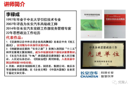 最近一次李老师代表党群部的活动,便是前往渝北工厂给渝北工厂和乘用车事业部讲授党务写作培训了。我开玩笑地对渝北工厂的人讲,你们这可是请了未来的长安汽车大学的特约专家讲师给你们讲课的,以后可就难请了,哈哈。