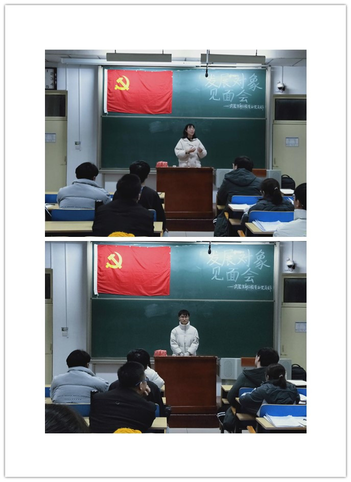首先,本次12名发展对象依次上台进行自我介绍,并对自己的入党动机进行了阐述。其中,17级的贺欢同学在谈及自己的入党动机时谈到自己平日的思考,即身为一个90后,我们是否能够很好地承担起自己的责任,在一代又一代人的接力中将我们的国家建设得更加美好。