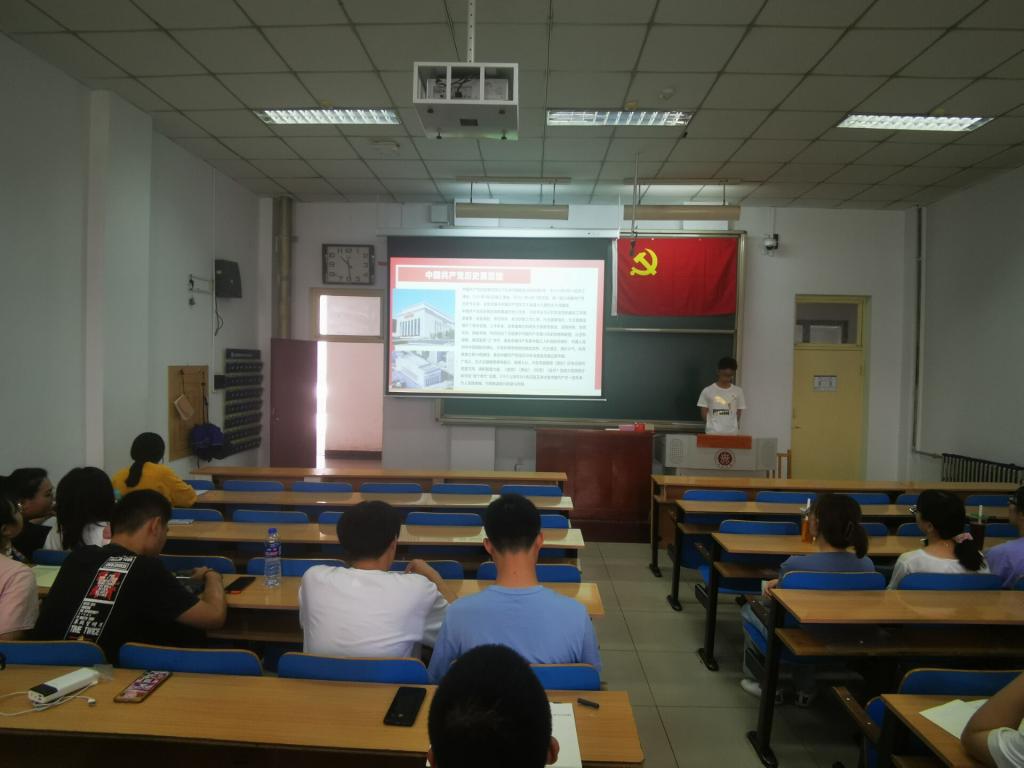 大会开始,第一党小组成员朱子文上台讲解了中国共产党历史展览馆的建成和其意义。她讲到,习近平总书记强调,党的历史是最生动、最有说服力的教科书。回望过往的奋斗路,眺望前方的奋进路,必须把党的历史学习好、总结好,把党的宝贵经验传承好、发扬好,铭记奋斗历程,担当历史使命,从党的奋斗历史中汲取前进力量。