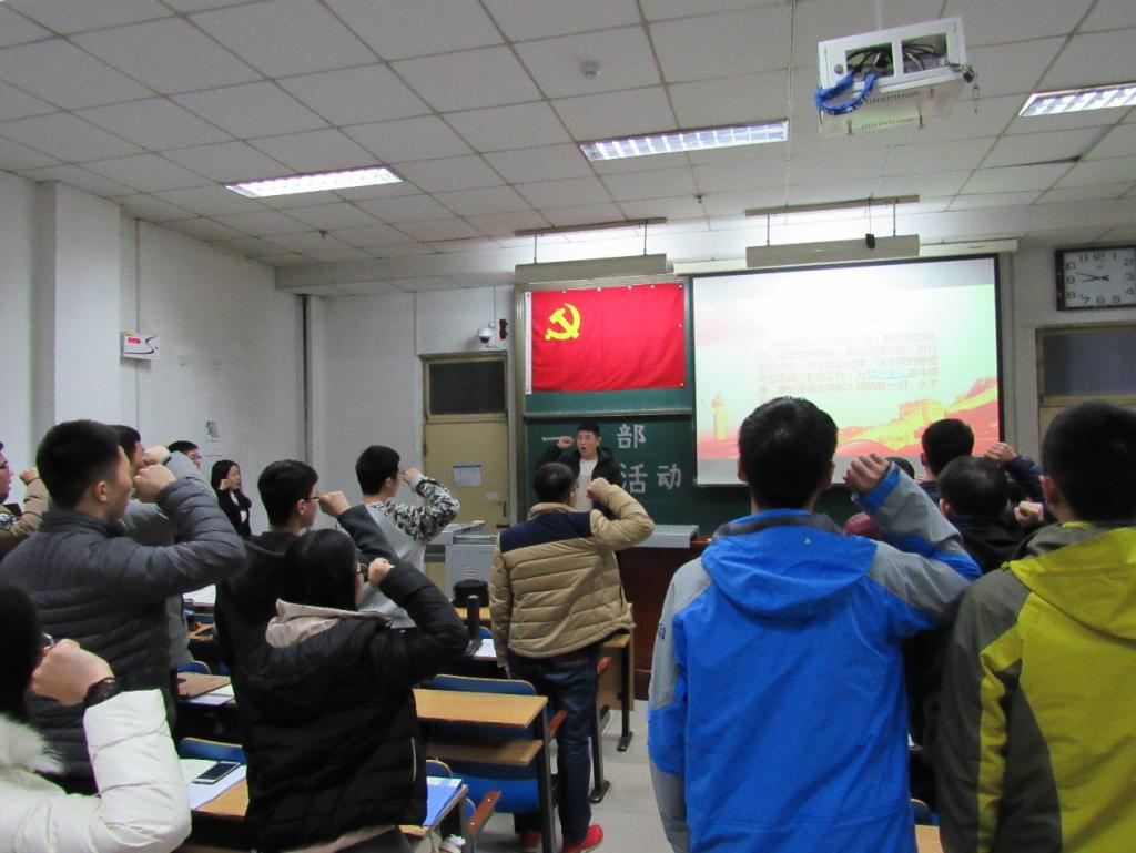 活动最后,焦凯同志上台给大家唱了一首红歌《北京的金山上》。接着,支部书记高幸华就本次主题活动做了总结,并带领同志们重温入党誓词。
