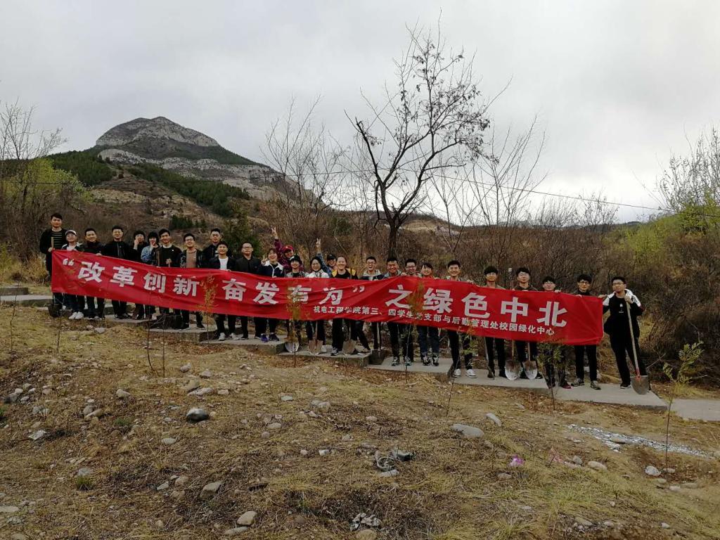 学生第三党支部、学生第四党支部成员于2019年4月13日举办“绿色中北”植树活动。当天下午2:10,H动漫