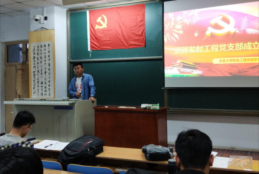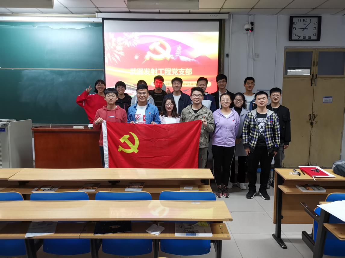 武器发射工程党支部,即学生第四党支部的决定,并简单介绍了支部情况,现支部共有19名成员,其中正式党员9名,预备党员10名。随后,四支部组织委员,纪检委员,宣传委员依次上台进行了自我介绍并说明各自职责。