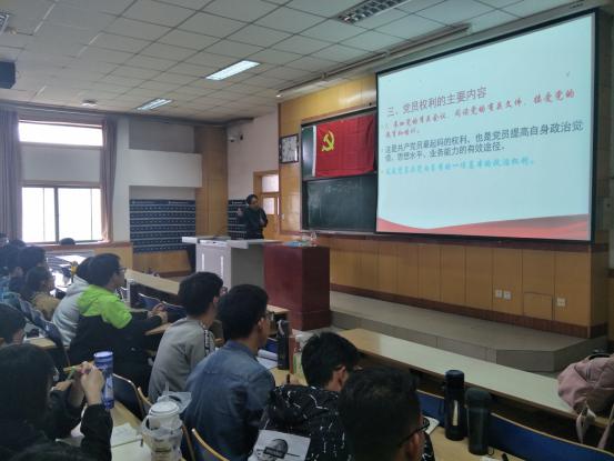 化工与环境学院党委书记李运芝老师生动而风趣地为本期入党积极分子详细讲解了三个方面的内容,分别是党员的权利和义务是什么、为什么要履行党员的义务和执行党员的权利、以及如何正确地行使权利和履行义务。课程最后李老师对大家提出了要求,希望入党积极分子在今后严格要求自己,并衷心祝愿大家能够早日加入中国共产党!