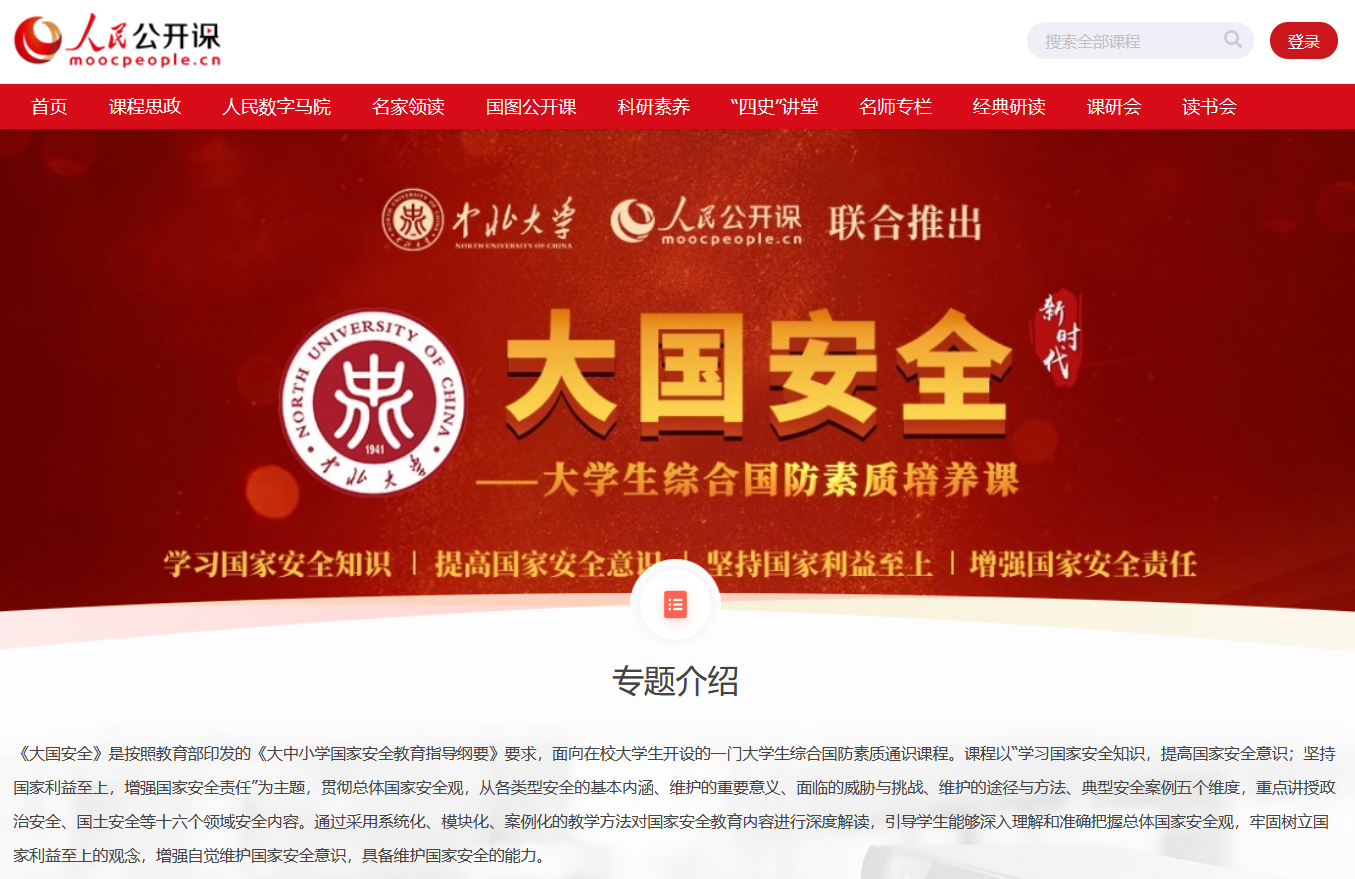 H动漫 建设的“课程思政”特色课《大国安全》上线人民网-人民公开课