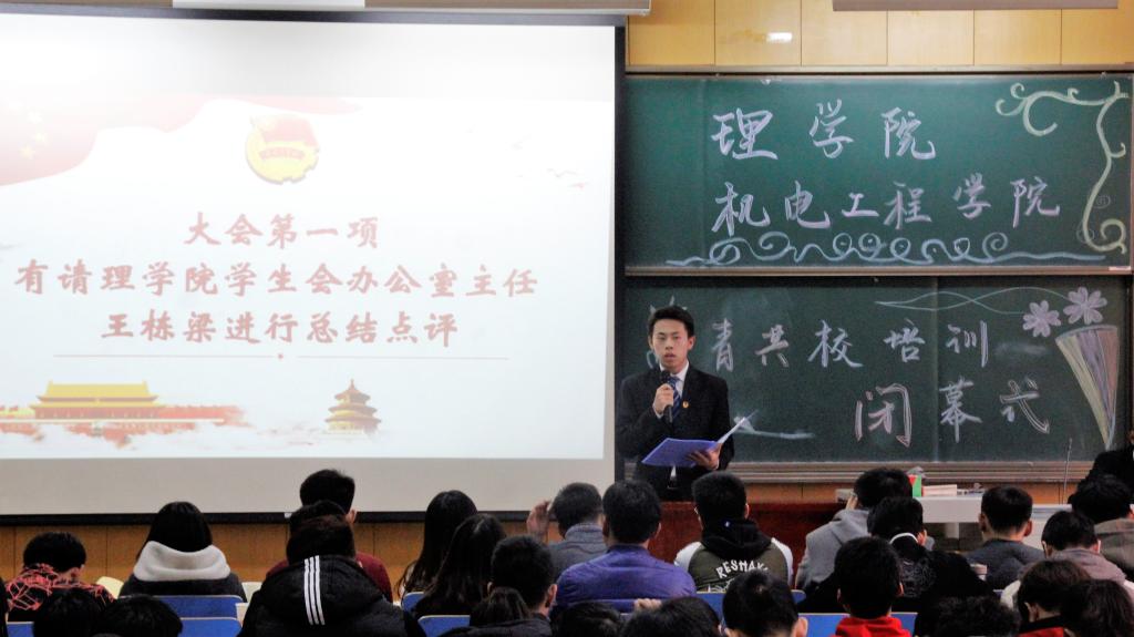 活动开始,由理学院学生会办公室主任王栋梁学长做闭幕点评。在答辩活动中,各组组长将小组八天内的成果一一列举,如举行小组内部成员见面会、在行知广场进行素质拓展活动、进行《辉煌中国》的观影活动、与外国友人交流等。由于同学们对青共校培训的认知不同,所以主题内容也不尽相同。其中第十二组成员们以自己的昂扬向上的精神风貌、精彩的才艺展示、充实丰富的答辩内容,得到了评委们以及观众的认可,勇摘桂冠,荣获一等奖。第二小组与第九小组两小组分别凭借“追梦”、“感恩”的主题与丰富多彩的才艺展示,令评委耳目一新,荣获二等奖。第一、六、十一小组,在落实工作方面尤为突出,得到了在场评委们的认可,荣获三等奖。当然其他小组也有自己独一无二的地方和不足之处,在被评委们指出后,同学们都虚心接受了指导。在理学院研习部副部长张研奥学长作最后呈词后,青共校培训活动正式落下帷幕。