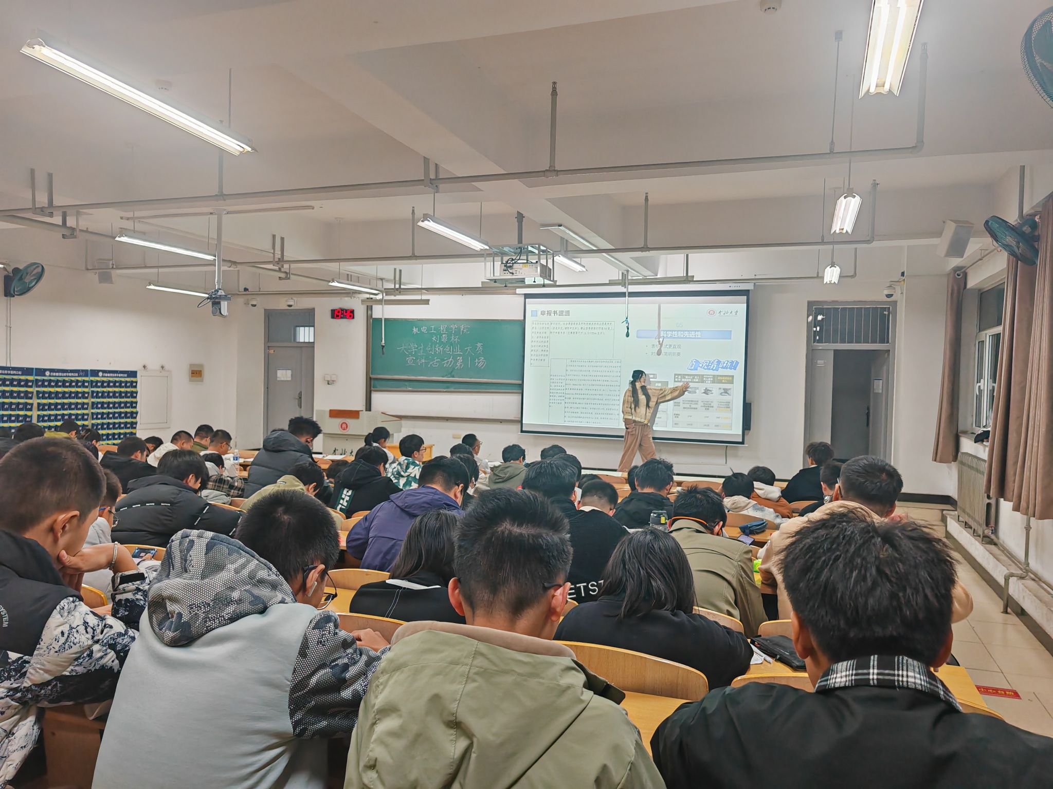 为提升学子科技竞赛竞争力,加强 “挑战杯” 与 “刘鼎杯” 赛事宣传,11 月 9 日 19:00,院科协于 15202H 教室举办 “刘鼎杯” 创新创业大赛宣讲会,吸引各年级 100 余名学生参与。