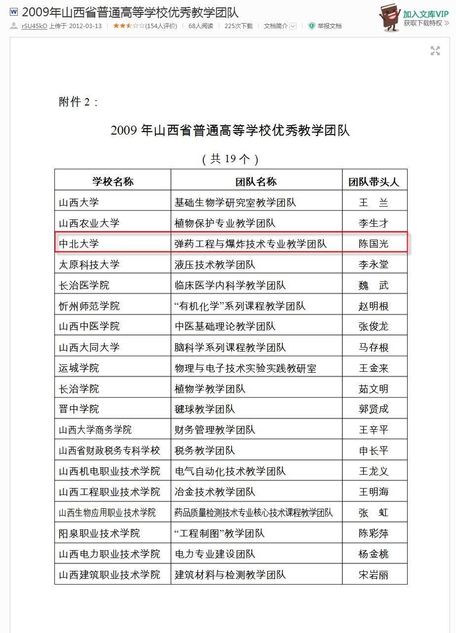 山西省优秀教学团队