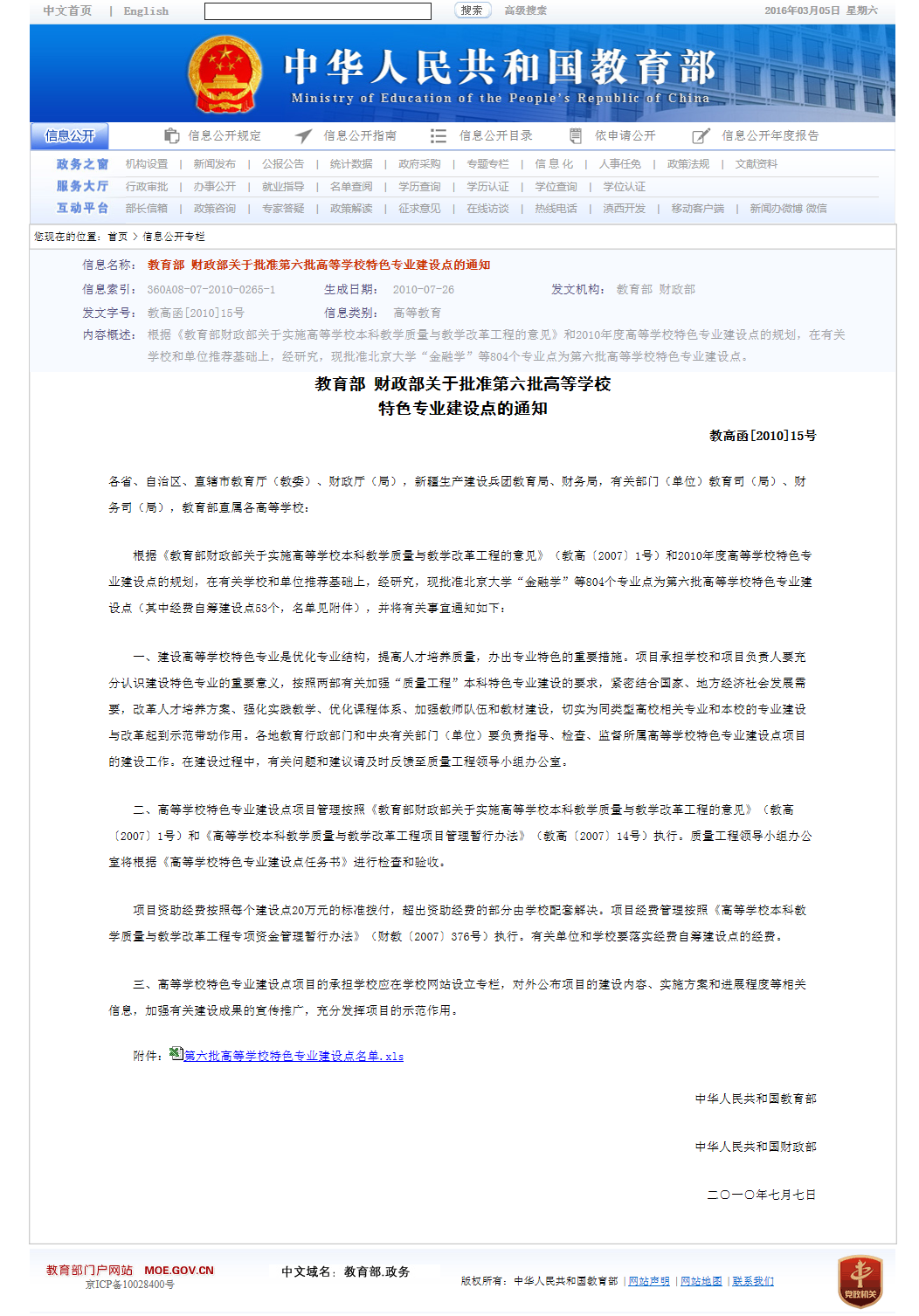 高等学校特色专业建设点
